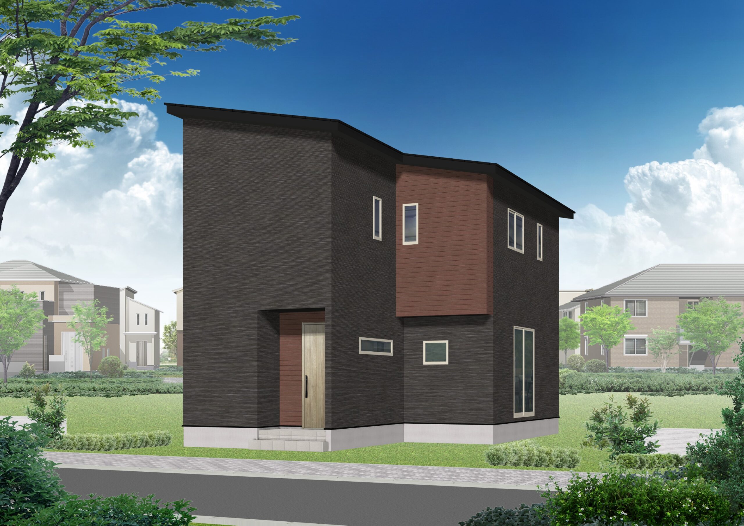 所在地/福山市東深津2丁目●市街化区域●構造/木造二階建て●築年2025年8月完成 ●設備/電気・上下水道・エコキュート・MIRAIE・浴室換気乾燥暖房機