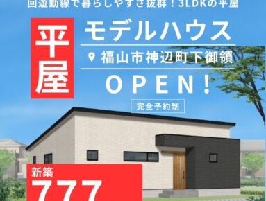 【福山市神辺町下御領】「平屋」モデルハウスオープン!(11/22~24)