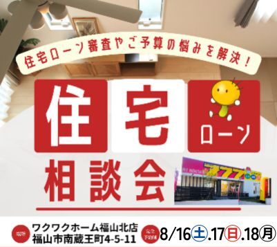 【福山北店】住宅ローン相談会を開催!(8/16~18)