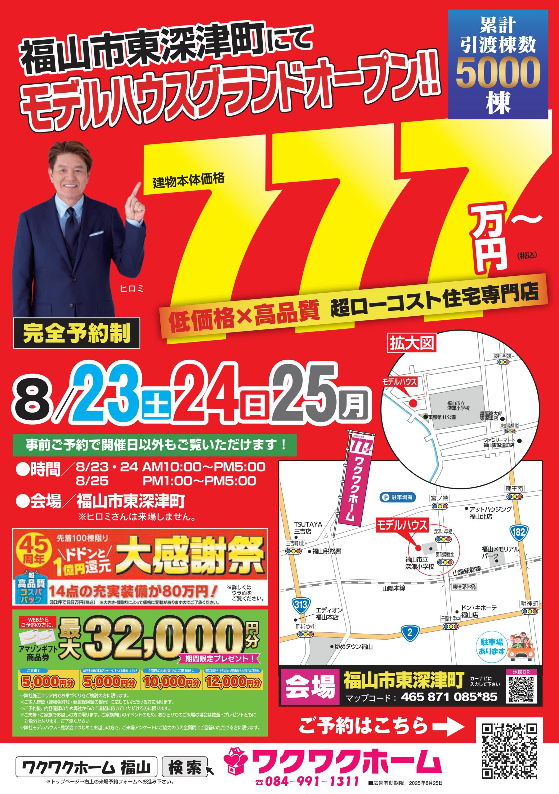【福山市東深津町】モデルハウスオープン!(8/23~25)