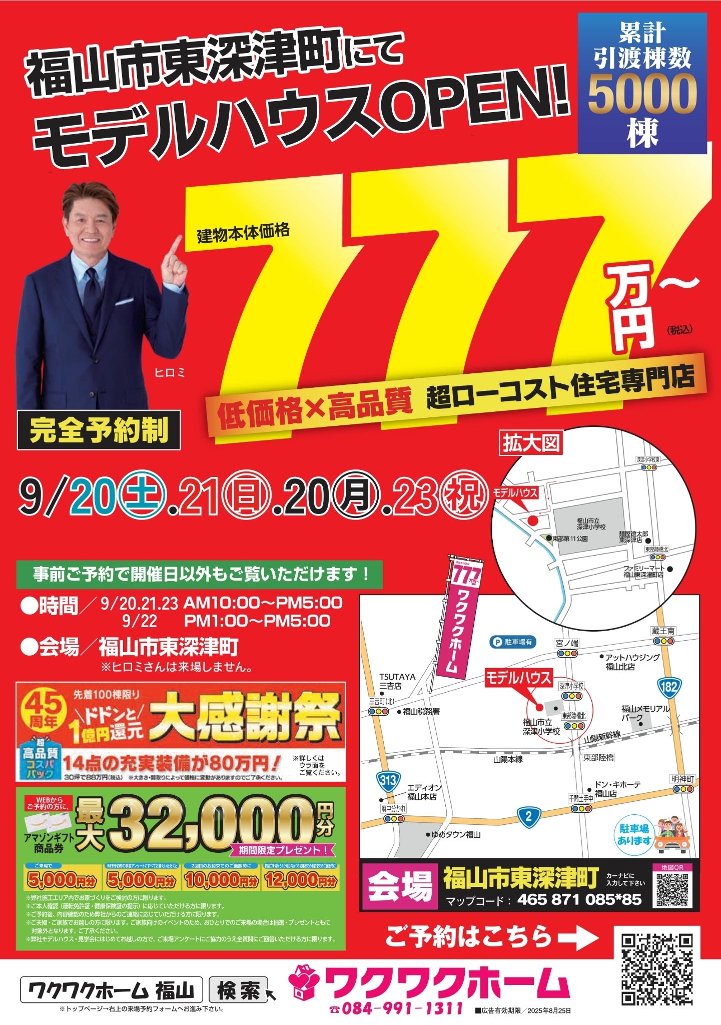 【福山市東深津町】モデルハウスオープン!(9/20~23)