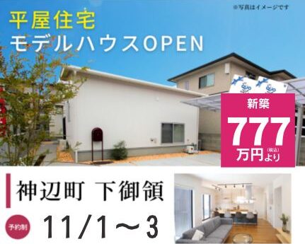 【福山市神辺町下御領】「平屋」モデルハウスオープン!(11/1~3)