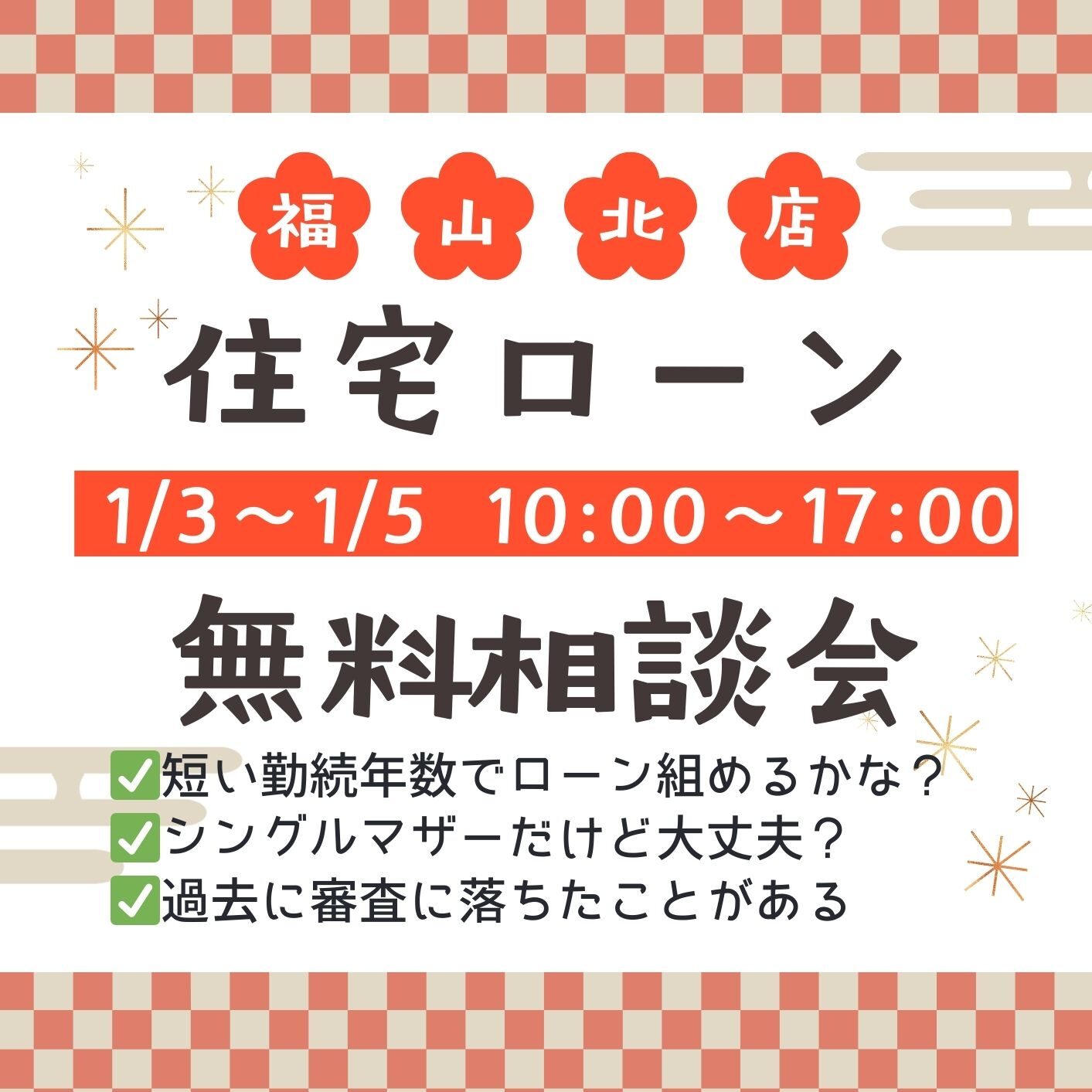 1/3から新春OPEN♪【福山北店】住宅ローン相談会を開催!(1/3~5)