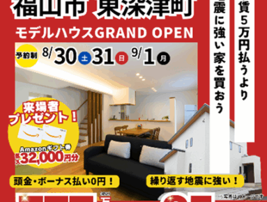 【福山市東深津町】モデルハウスオープン!(8/30~9/1)