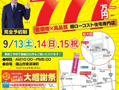 【福山市東深津町】モデルハウスオープン!(9/6~8)