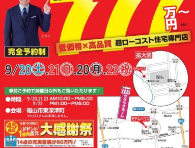 【福山市東深津町】モデルハウスオープン!(9/20~23)