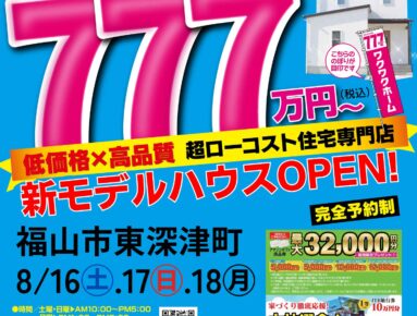 【福山市東深津町】新モデルハウスオープン!(8/16~18)