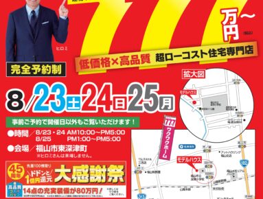 【福山市東深津町】モデルハウスオープン!(8/23~25)